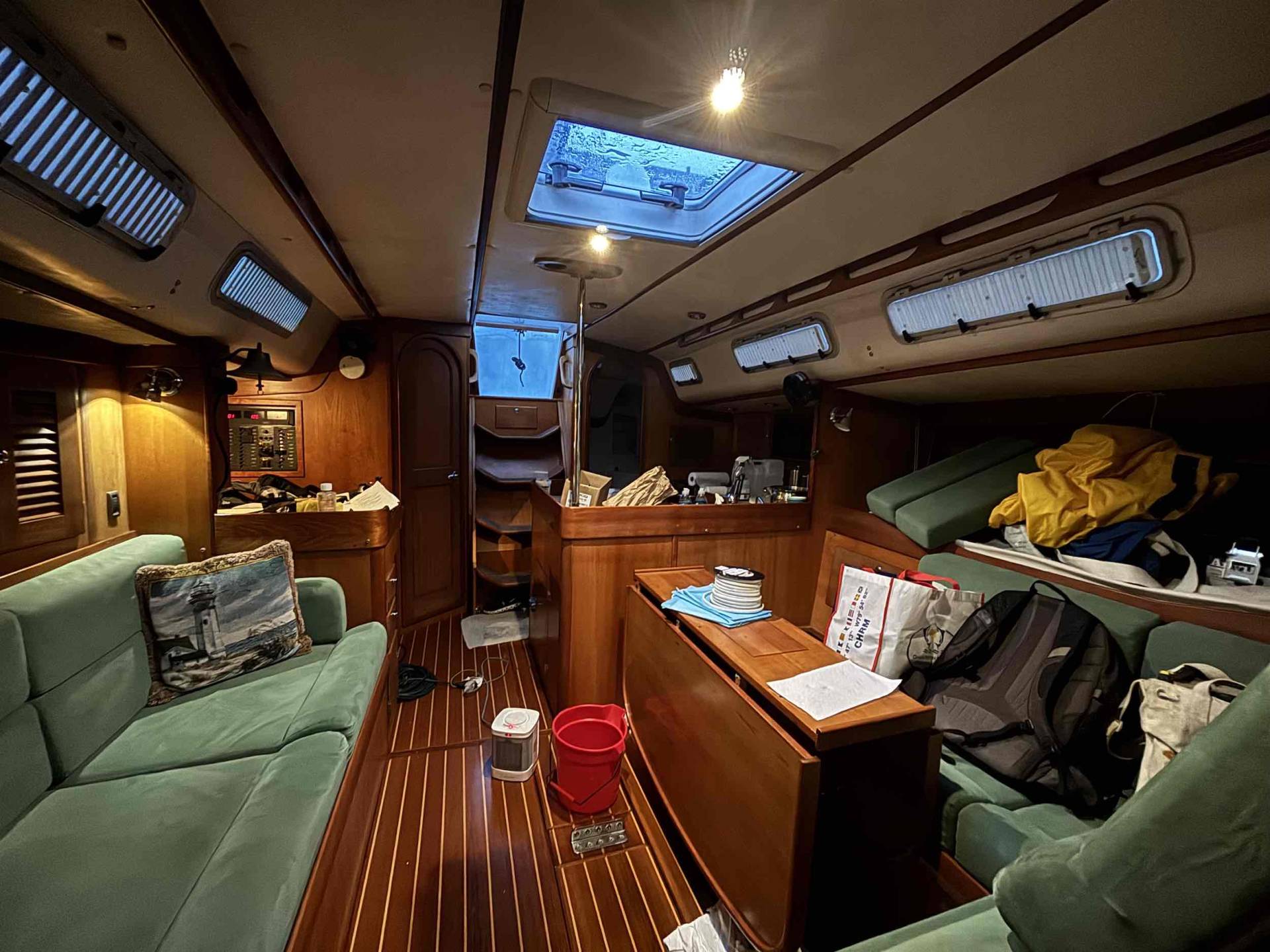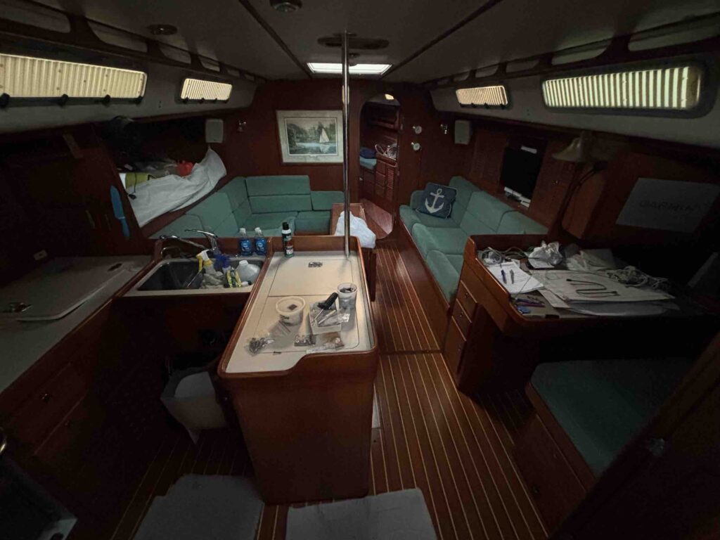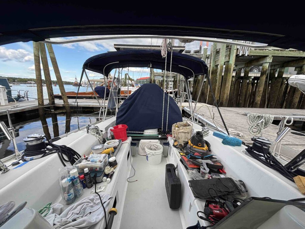 Even though we were back in the water, there was still a lot to be done. We had our own list of projects and deep cleaning to do, and I don’t think there was a weekend where we weren’t at Hamilton Marine for something or other. Plus Front Street still had a few things to finish up – our reefing lines, some work on the electronics, propane tanks, and stuff like that. We were on the dock for a couple weeks and then they moved us out to a floating dock, so it made it easier as we ferried load after load of stuff back aboard from the apartment and storage. We’re thrilled with where she’s at – between the work that we had Front Street handle and the projects we took on, Windara is in the best shape she’s been in since probably before we bought her. We still have a list of projects to do, but other than our watermaker, everything else can wait. (We’ll do a full rundown of the refit with before/afters in another post.)