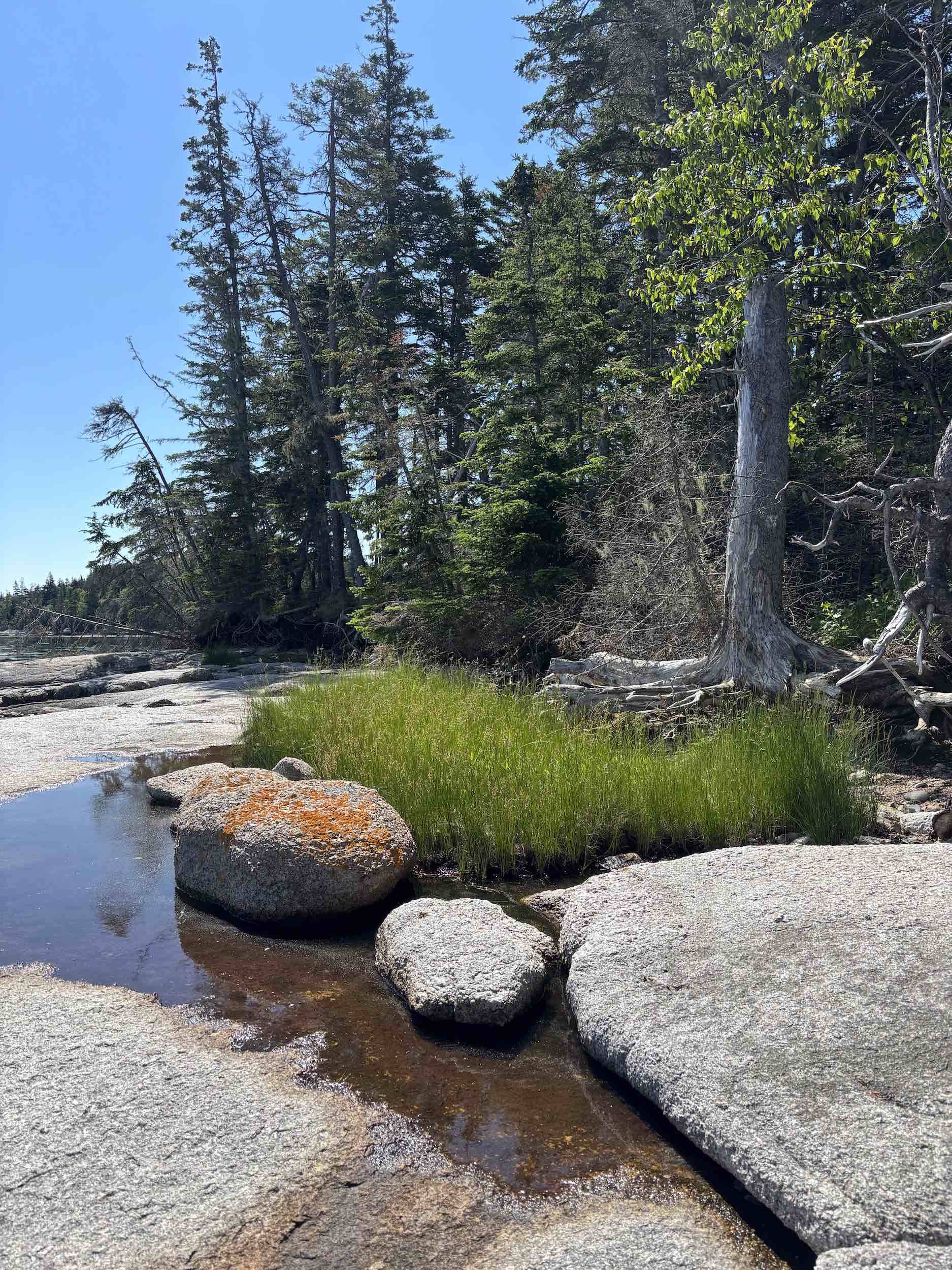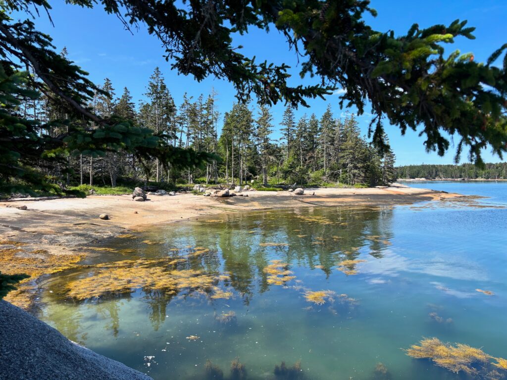 There’s a tiny unnamed island off of Devil Island with just a few pine trees on it, and it inspired me to break out my watercolors and try to paint it. It was hot out, so my paints dried quickly and I needed to work faster than I would have liked, but it was my first plein air attempt, and I’m happy with the result. Later in the day, we took a dinghy ride around Bold Island and enjoyed the pretty coastline (there’s a house on the island, so we assumed it’s privately owned and didn’t go ashore). I never noticed before, but the channel between Hells Half Acre and Devil Island gets incredibly shallow at low tide, and it was neat to see the landscape from such a different angle.