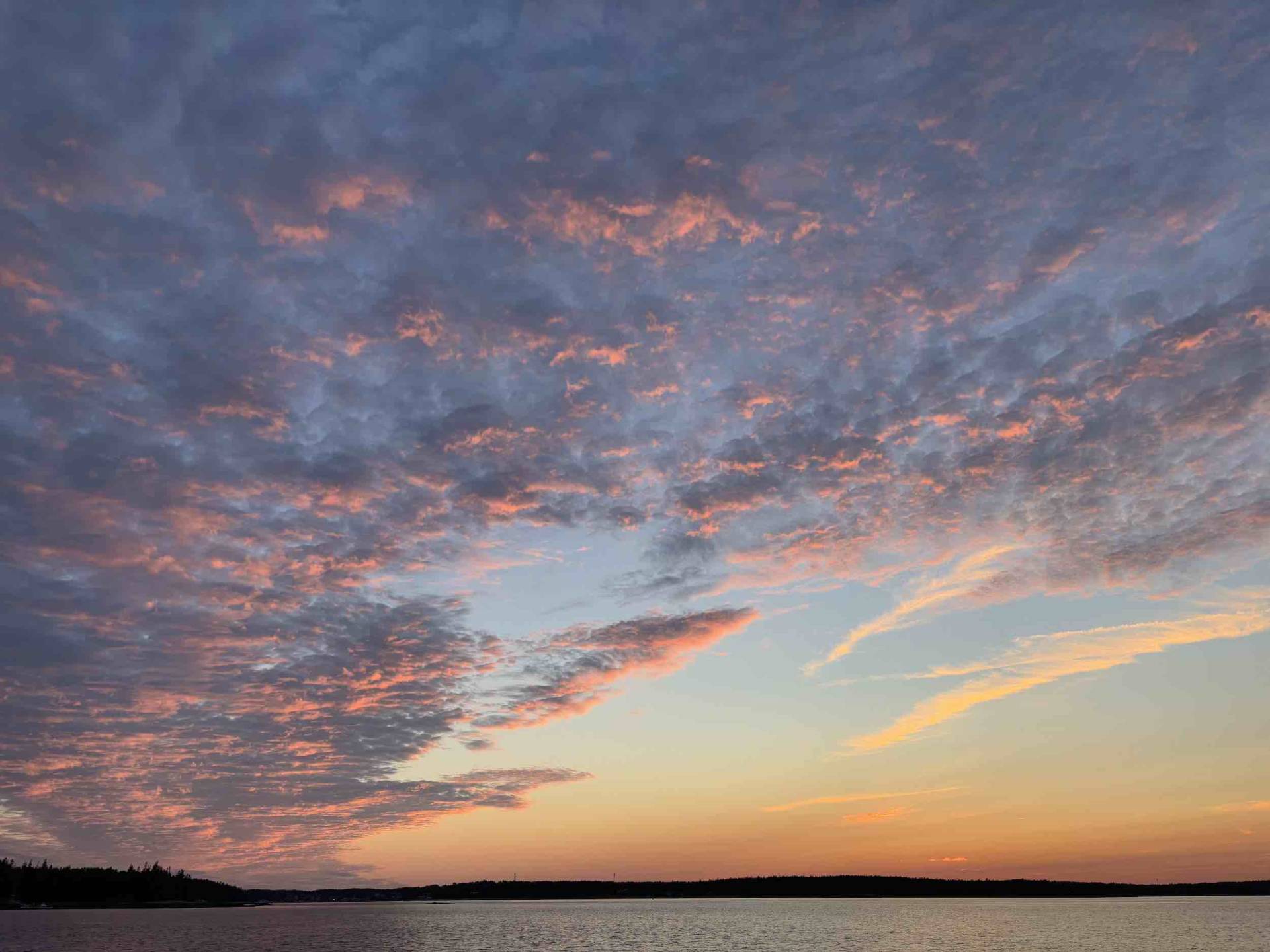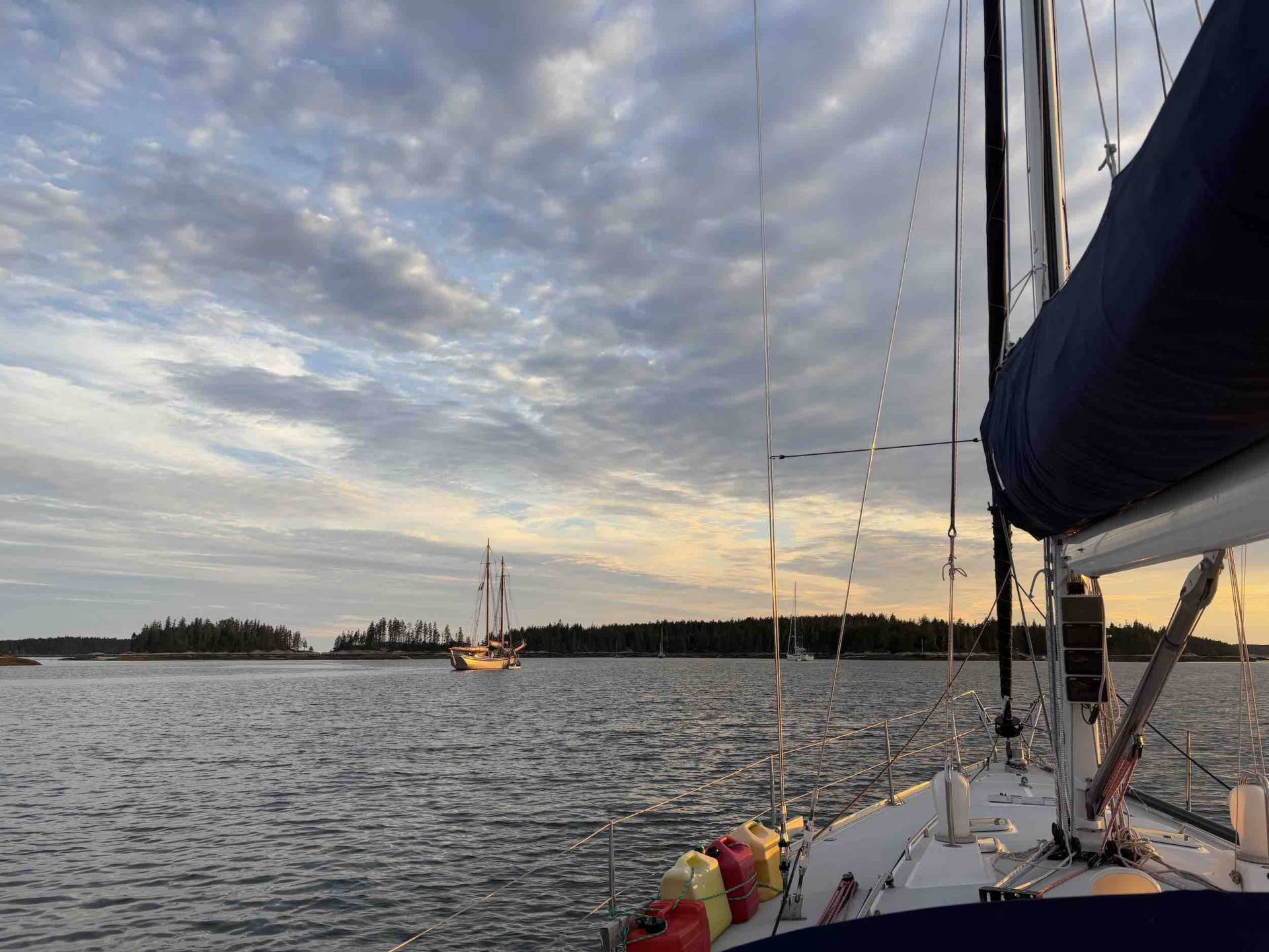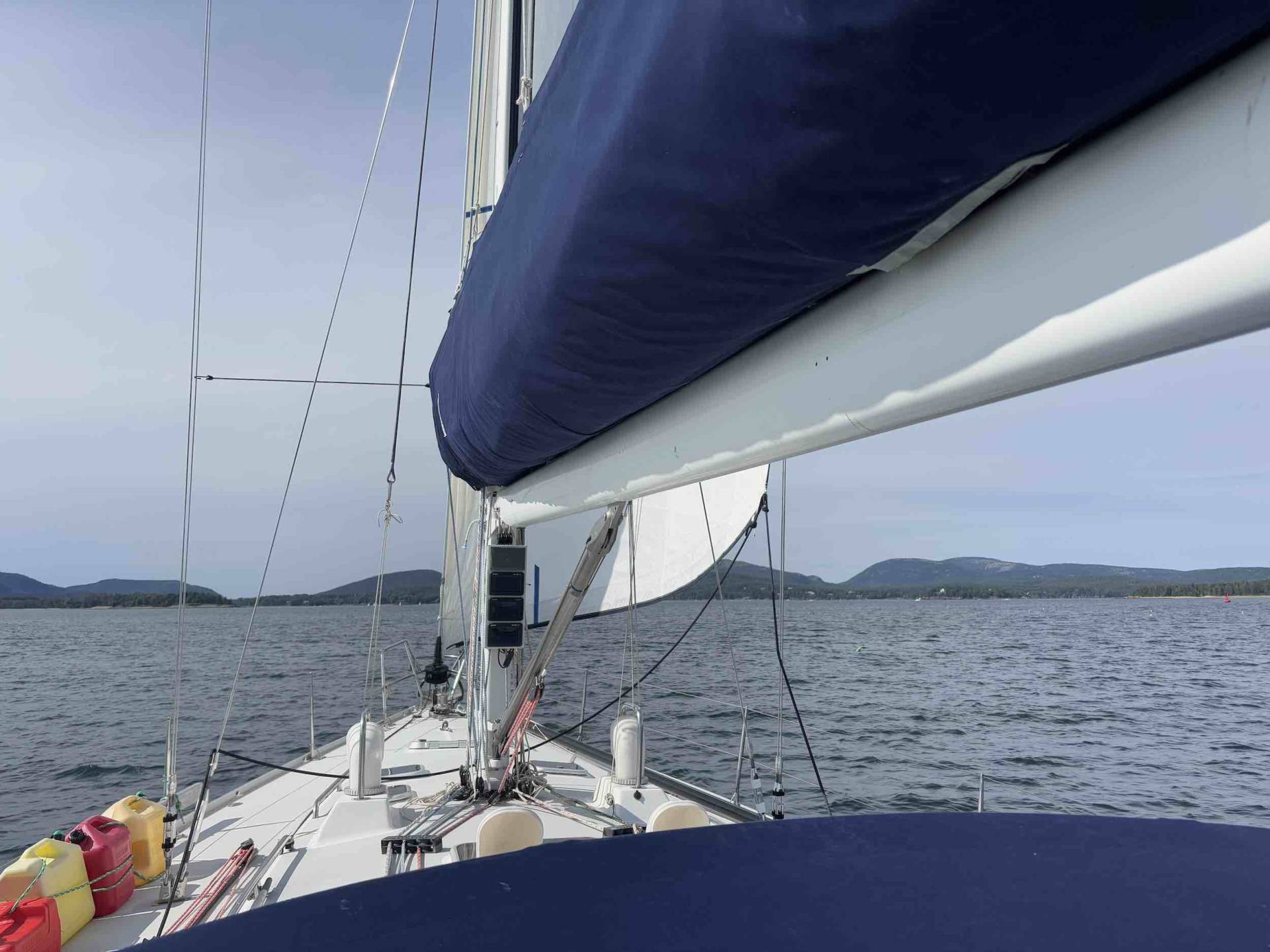 Early yesterday morning, we reluctantly hauled anchor. We were sad to say goodbye, but the weekend forecast is for rain and possibly strong winds, so it was time to move on. And I’m excited to be back at MDI. We broke up the trip into two runs – first, we got an early start to anchor up near the ferry dock at Swans Island so I could take a meeting and wrap up a few loose ends before my vacation started. Once that was done, we had a beautiful sail over to MDI and up to Abels, where we’d reserved a mooring for the night. As we entered the fjard (a smaller, shallower version of a fjord) at Somes Sound, we passed a field full of lupines, which I’ve been obsessed with this summer.