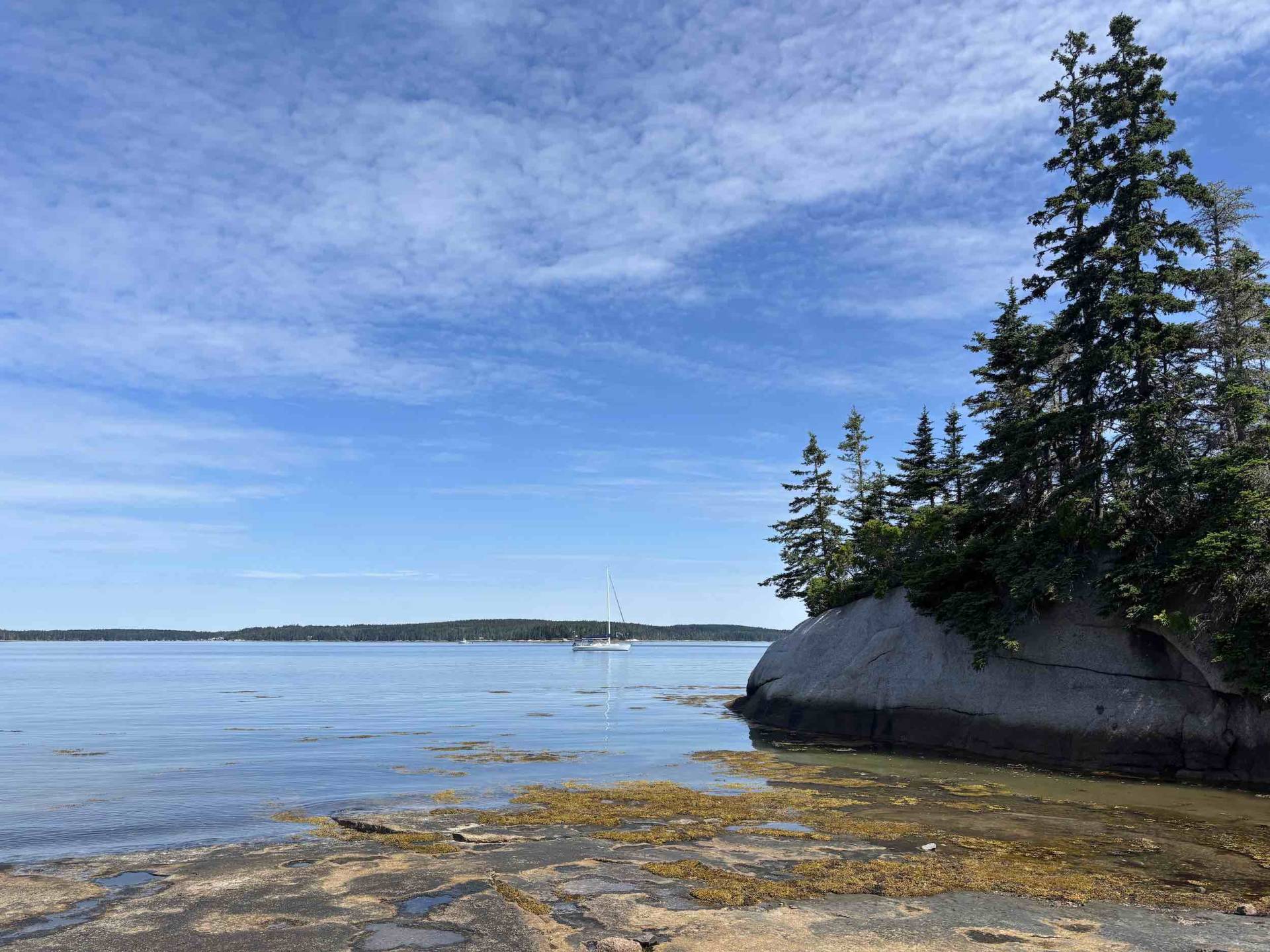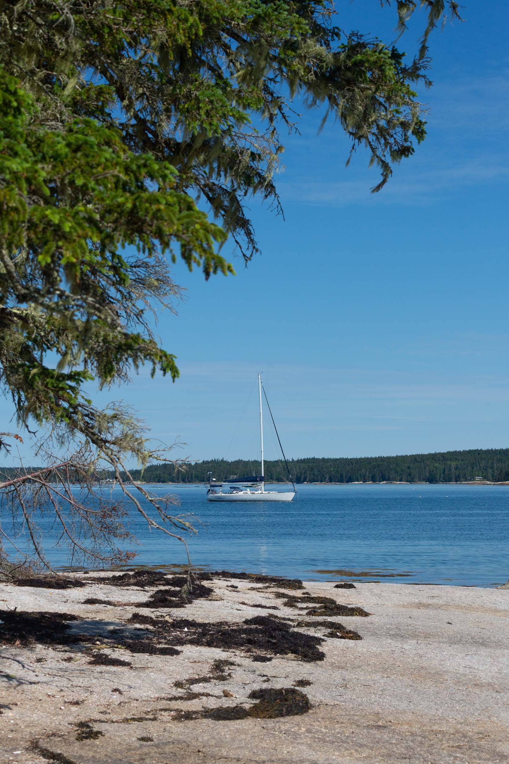 Windara was the only boat there, and I was equal parts bummed and happy to see there was a kayak group camping on the island. It meant that if we went ashore, we’d not have it to ourselves, but at the same time, I was glad to see people enjoying this gem along the Maine Island Trail. (Even though it turned out to be a group of noisy teens on some kind of summer camp-type outing, I’m sure it was a great experience for them and if it instills a love of and respect for nature, I’m all for it.)
