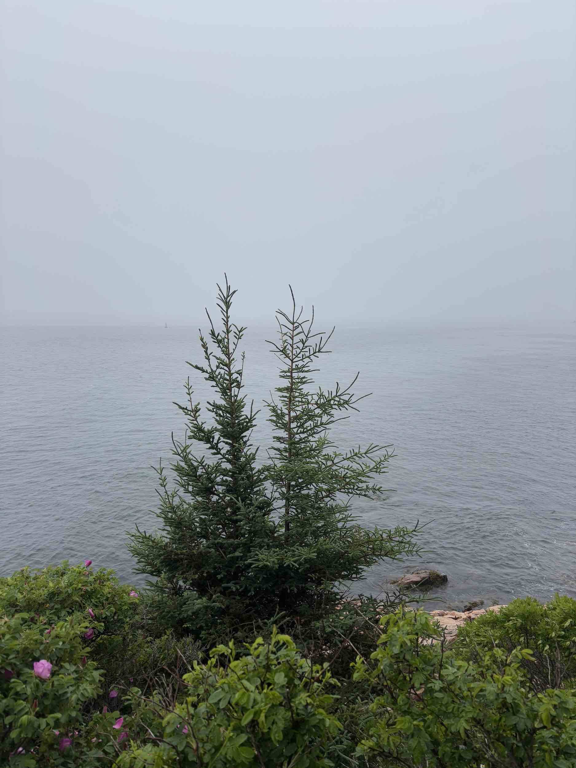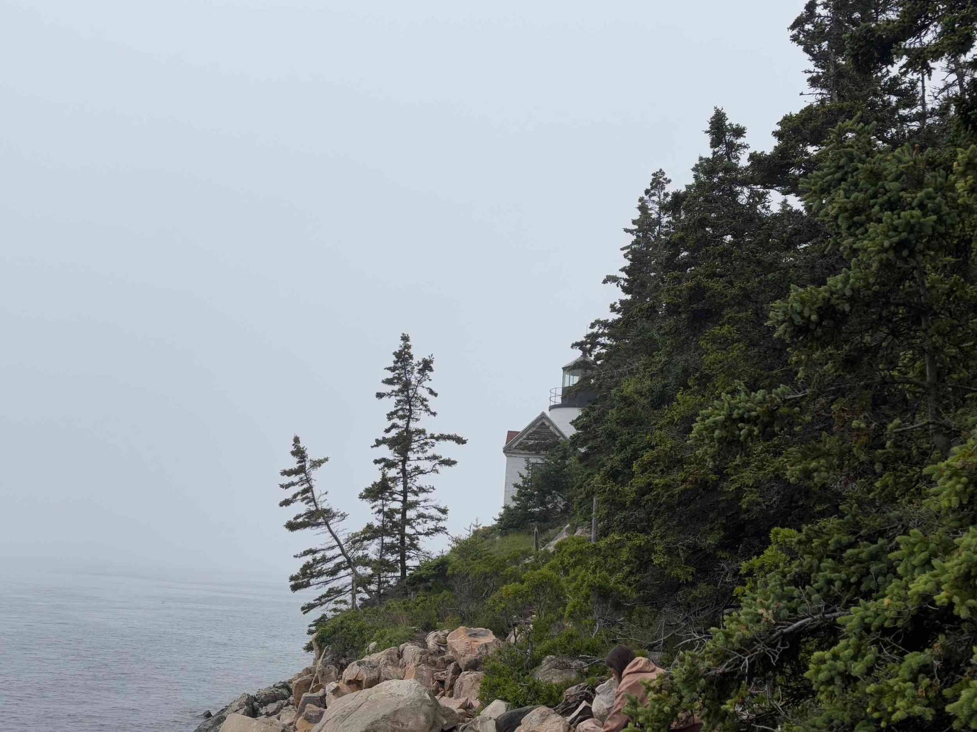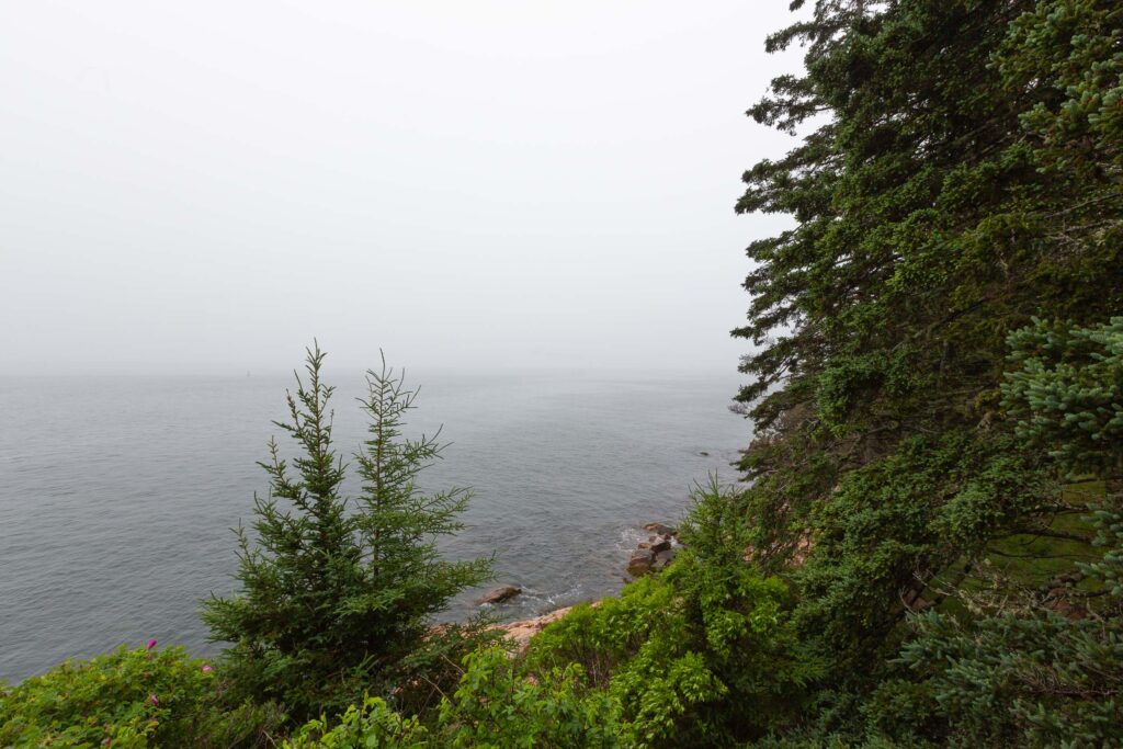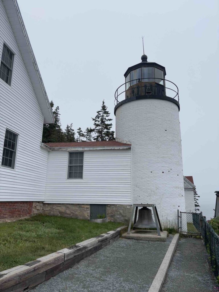 Yesterday was gray and muggy, but thankfully the rain held off. We decided to extend our stay at Abels for one more night and go explore the west side of MDI a bit more. After having sailed past Bass Harbor Head Lighthouse three times, I was curious to see it from land. There’s a bus stop within an easy walk, so we caught the bus over in Somesville (a quick dinghy ride), where we ran into the cruising couple whose boat we’d seen in the harbor. (We also discovered a little museum and garden in Somesville that we’ll have to go check out sometime.) There was a long line of cars waiting to access the rather limited parking lot at the lighthouse, but we were able to walk right in, see the light from up close and from the rocks below, and still make it back in plenty of time for the next bus.