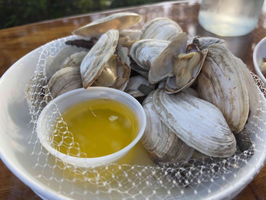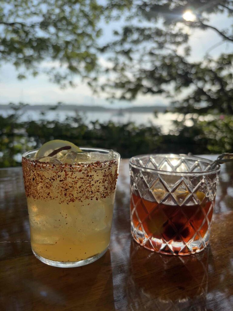 Since we had time on the way back, we got off in Southwest Harbor and walked around – unfortunately being Sunday, there wasn’t much more open than last time we visited, but it was still a nice stop and I was finally able to find a Southwest Harbor sticker for the log book. Afterwards, we decided to have appetizers and a sundowner at Abels (the chowder fries were amazing!)