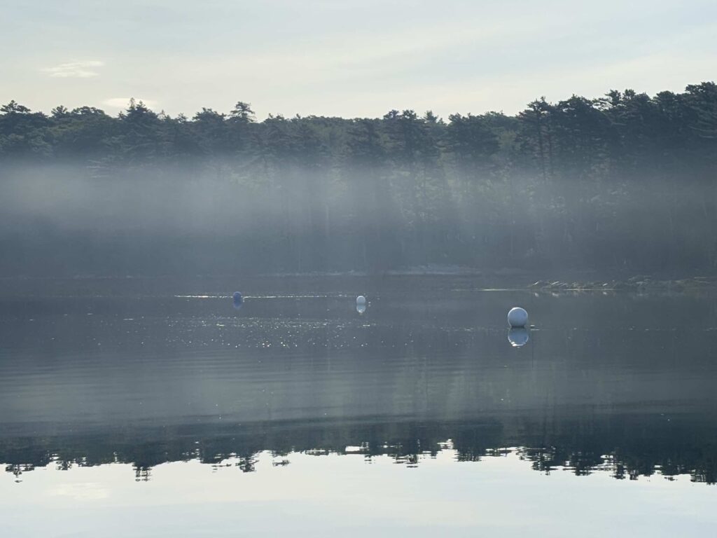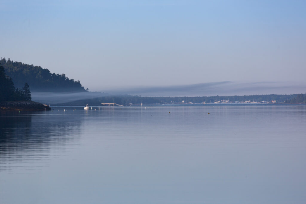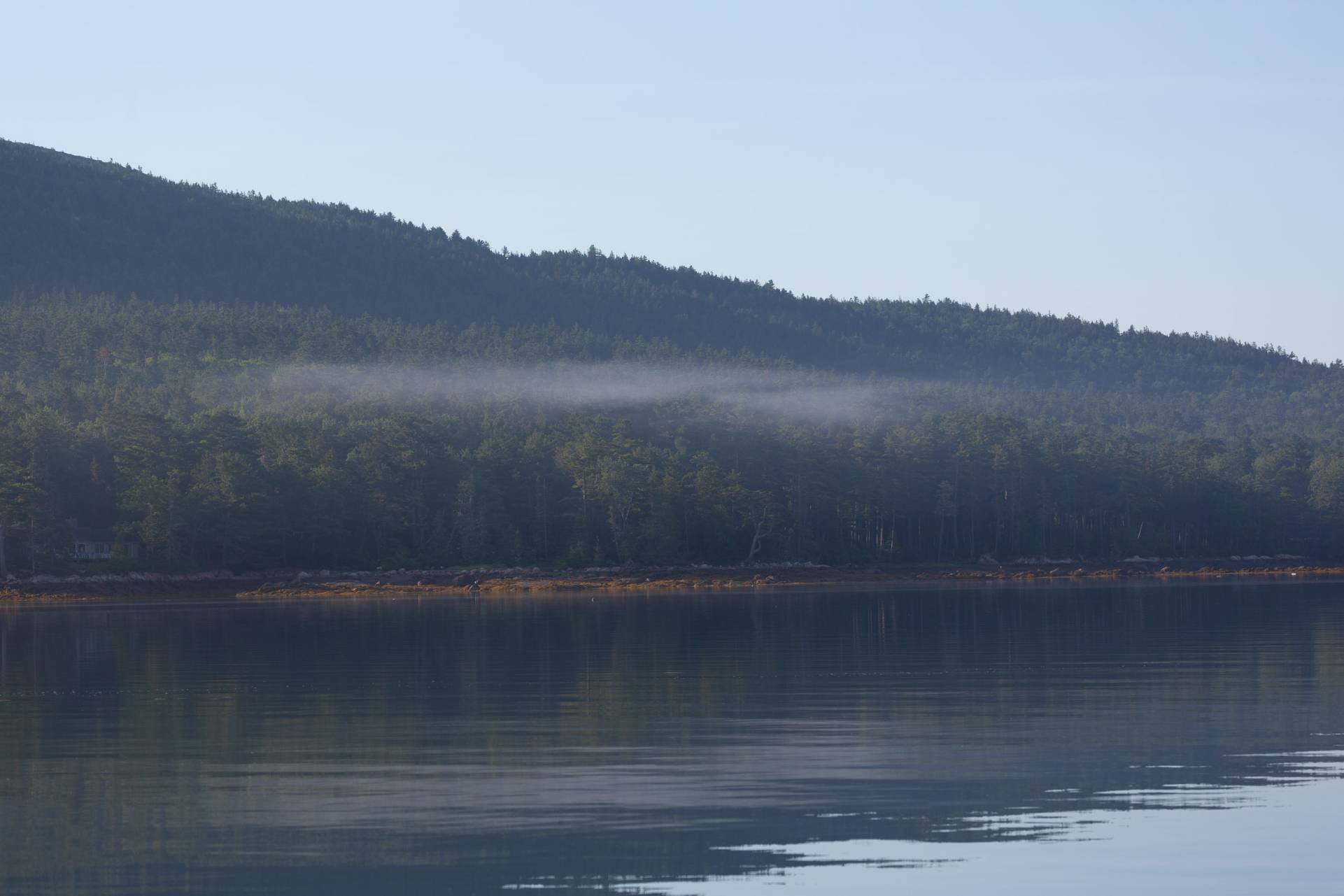 This morning I awoke to bright sunshine and tendrils of mist coming off the mountains. It was calm and quiet (except for the occasional bark of the seals) – a perfect morning.