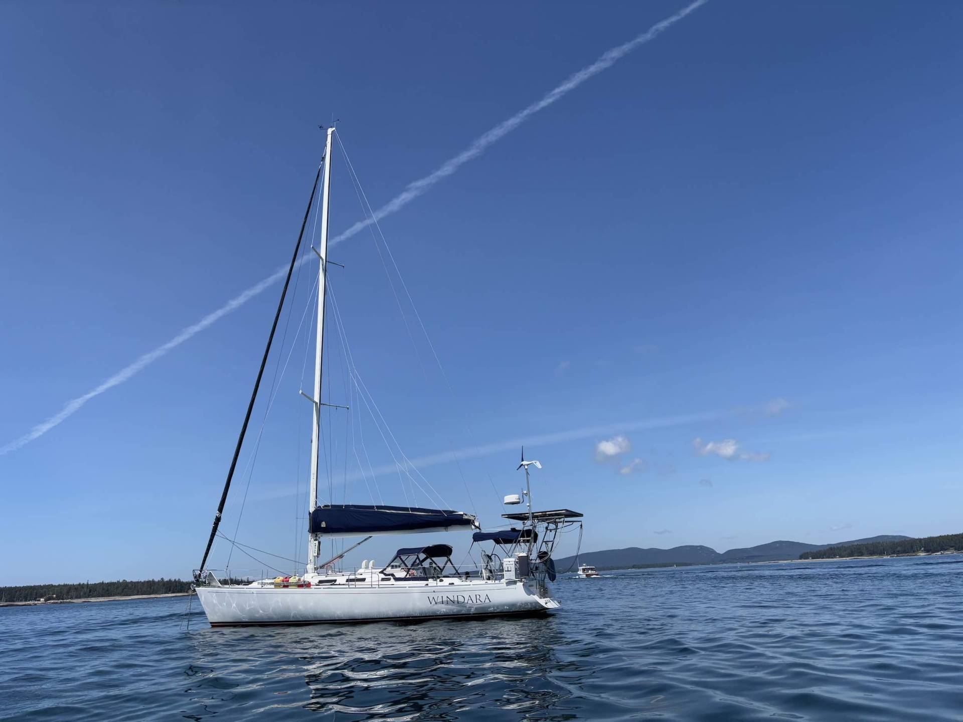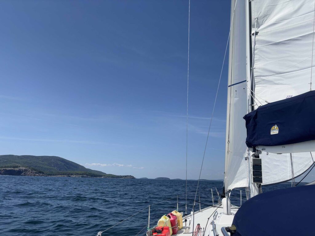It was probably the best sail we’ve had this season, and we’re now anchored just on the other side of Bar Island. I was worried that there would be a lot of boats here, but there was only one other sailboat in the anchorage, so we were able to find a good spot clear of the mooring field. I’m looking forward to getting in some hiking and for Chris’s brother-in-law and his fiancée to visit us later in the week!