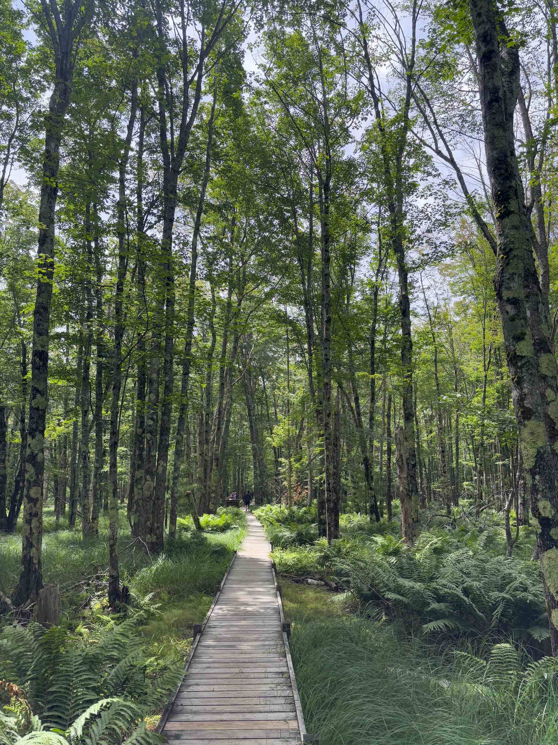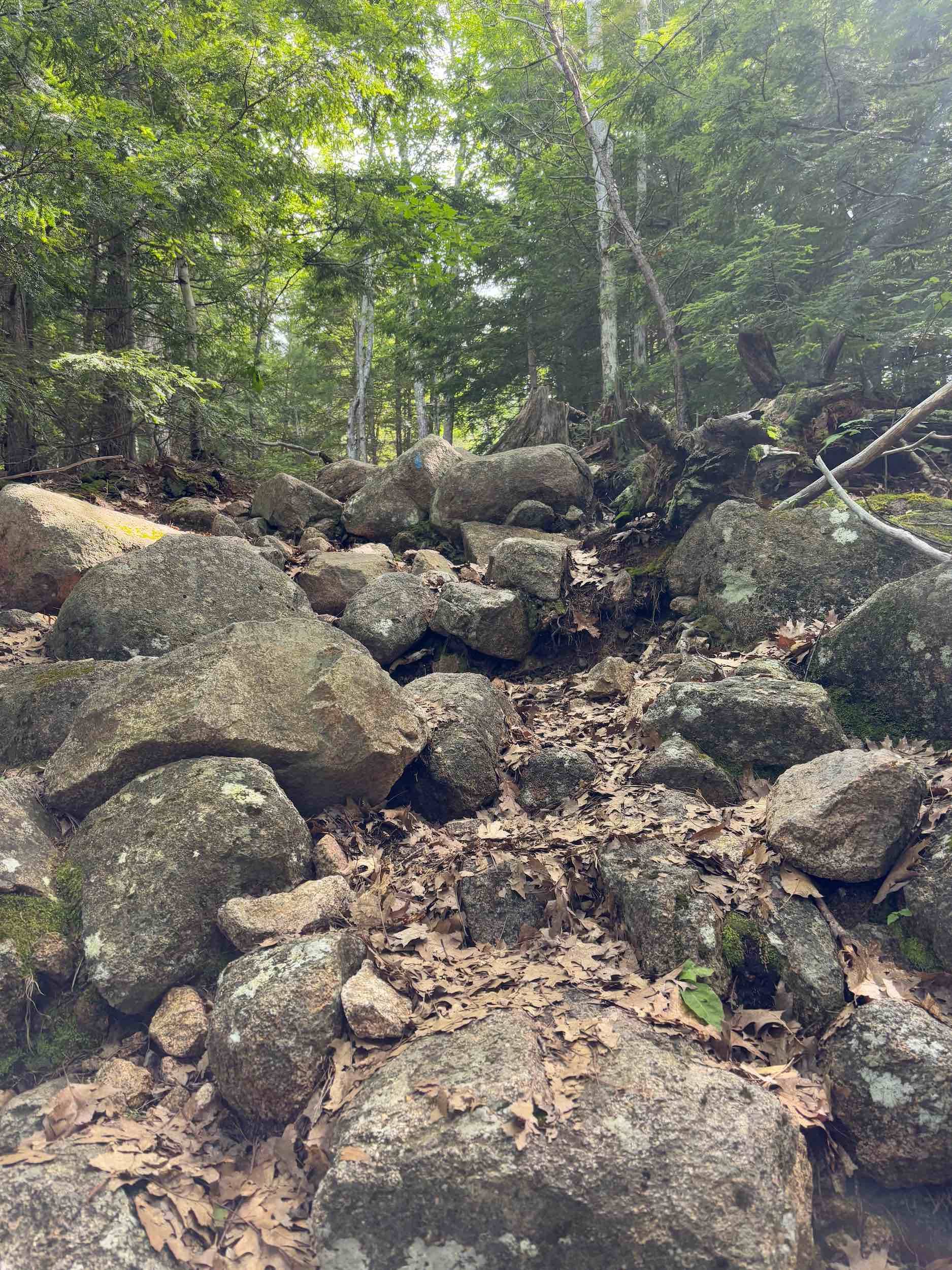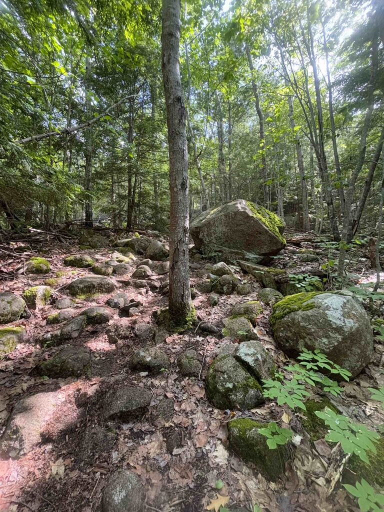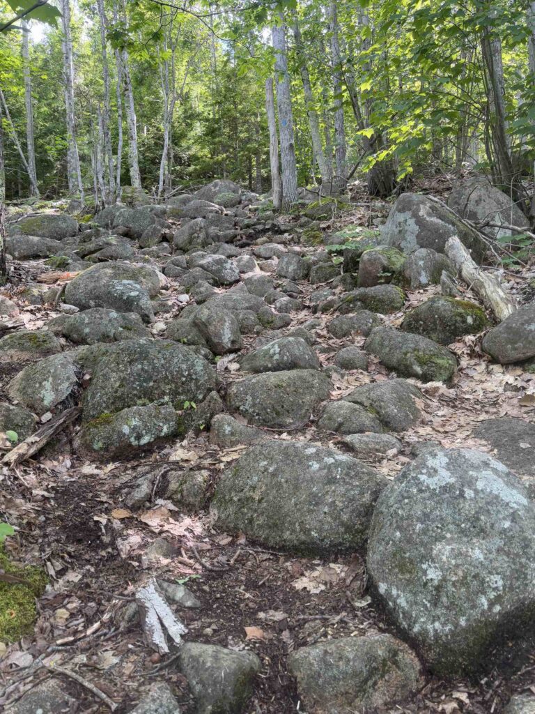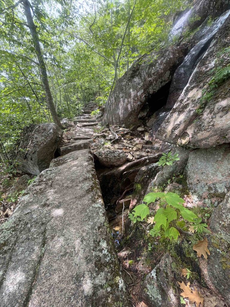 Wednesday, we hopped the bus and spent the day hiking in Acadia. We first hiked Jessup Path, an easy, flat trail through some beautiful wetlands and meadows out to Kurt Diederich’s Climb, a .4 mile steep ascent with lots of granite steps. There were a couple of little spots where my fear of heights kicked in, but for the most part, it just served as a reminder that I don’t walk up nearly enough steps in a day to be in shape for something like that! It’s a beautiful trail, though, and there are some great views. We continued along Schiff Path which felt mostly easier, but the last .4 miles is another steep ascent, this time over exposed granite, to reach the summit of Dorr Mountain. It was hot and humid, and I was definitely feeling it, but I was hell bent on reaching the summit – it was absolutely worth it. The views of Frenchman Bay and out to sea are stunning (we could even see Windara!), and I felt a major sense of accomplishment reaching the top. Dorr is the third highest peak in the park (1270′), sitting about 300 feet below Cadillac. We could see all the people on top of Cadillac, but we had the Dorr summit to ourselves and passed only a handful of hikers all day. We returned via the Dorr North Ridge Trail, which descends 970 feet in .8 miles. The trail is a combination of exposed granite, lots of tree roots, and some rock scrambles, so it was slow going but really pretty, and we got to the Wild Gardens of Acadia with time to spare before catching the bus back to town.
