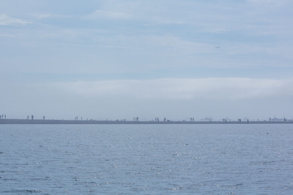 Our first day in Bar Harbor was foggy and chilly, and we spent a lot of time relaxing in the cockpit, watching the fog come and go. One of our goals this season is to break out all the stuff we’ve been lugging around and decide whether or not it’s worth keeping, so we finally got inspired to (mostly) set up the enclosure. It doesn’t quite fit right, but it does help keep the bugs and the chill at bay, which will be especially nice when the weather starts to get colder. We haven’t decided yet whether the screens are worth it, but for now they can stay.