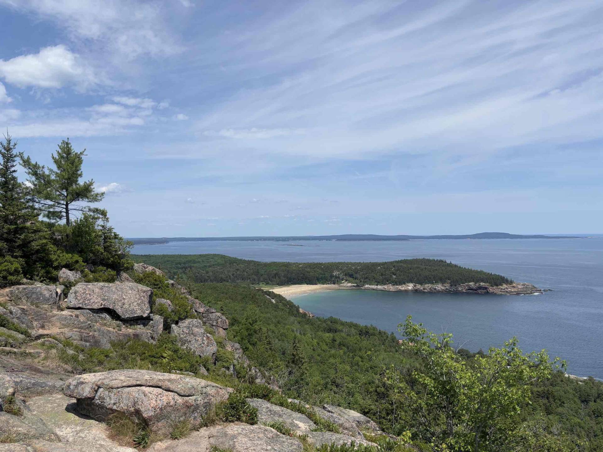 Saturday got off to a late-ish start, so we decided to keep the hike relatively short and easy. Chris and I did Gorham Mountain last year, and we thought it would be a good choice with its relatively easy terrain and beautiful views. We took the Cadillac Cliffs split, one of my favorite sections of trail I’ve discovered in the park so far. This time around, it was a little easier fear-of-heights wise. We stopped for lunch at the summit and on the way down hiked over to the Bowl. From there, we headed for Sand Beach to catch the bus, and our timing was perfect (even if we did have to run for it) – we somehow managed to board ahead of the crowd. Back in town, we said our goodbyes to Dan and Chelsea and headed back to prepare Windara for a morning departure.